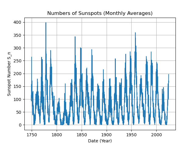 The following is an example of digital signal processing applied to scientific data analysis. The sunspot data was obtained from the Solar Influences Data Analysis Center (SILSO)